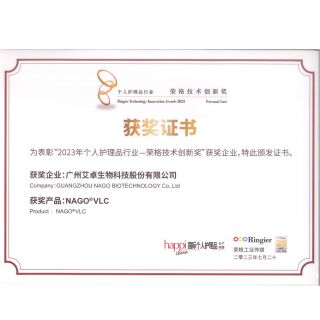 NAGO®VLC 獲得由法國ECOCERT 授予的歐盟COSMOS天然認證